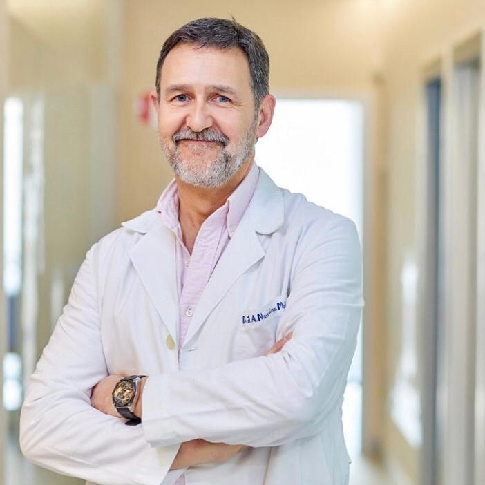 El Dr. Navarrina cuenta con una extensa experiencia en los campos de la ginecología y la obstetricia, especialidad por la que apostó tras formarse primero como médico de familia. Originario de Santiago de Compostela, ha desarrollado su carrera en el País Vasco, donde ejerce actualmente como médico adjunto de Obstetricia en el Hospital Universitario Donostia. Compagina sus responsabilidades en el hospital con su clínica en Irun y su plaza como profesor asociado de la UPV.